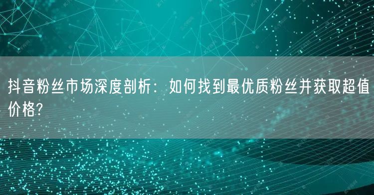 通过以上内容的深度剖析,帮助读者理解如何在抖音平台上找到最优质粉丝并获取超值价格,为内容创作者提供有价值的参考和指导。
