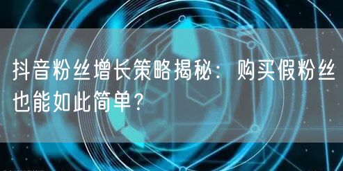 随着抖音平台的日益普及,越来越多的个人和企业希望通过抖音实现品牌宣传、产品推广和粉丝积累。而粉丝数量在一定程度上决定了影响力的大小。那么,如何实现抖音粉丝的快速增长?购买假粉丝是否是一个可行的选择?本文将一一为您揭秘。