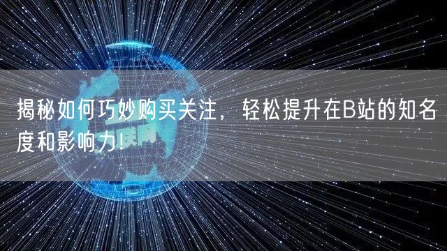 在B站这个充满活力和创意的平台,想要快速提升知名度和影响力,除了优质内容外,关注度的积累也至关重要。本文将为你揭秘如何巧妙购买关注,让你的账号在B站脱颖而出!