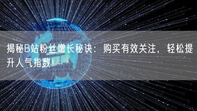 购买有效关注是B站粉丝增长的一种有效方式。但需要注意的是,购买关注只是辅助手段,优质的内容和运营策略才是吸引粉丝的关键。通过购买有效关注并结合运营策略,可以快速提升B站账号的人气指数。