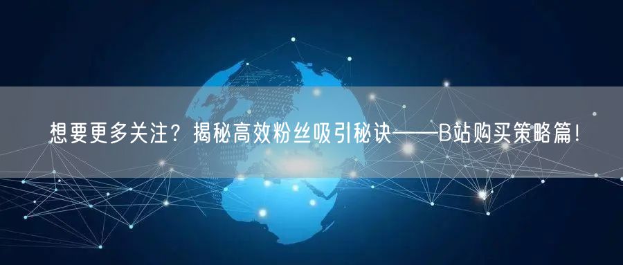 在B站,购买策略是一种有效的增粉方式。通过了解并合理运用购买策略,可以快速增加曝光度,提高关注度,进而吸引更多粉丝。本文将详细介绍B站的购买策略,帮助你在激烈的竞争中脱颖而出。