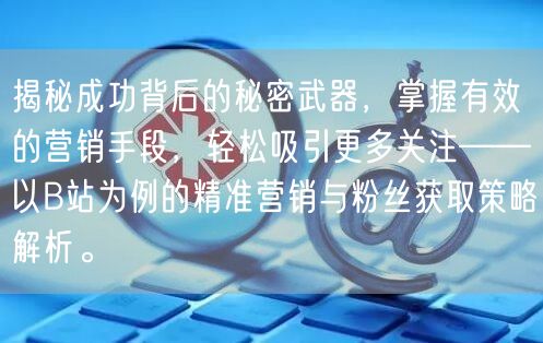 在当今竞争激烈的市场环境中,成功背后的秘密武器究竟是什么?如何通过有效的营销手段轻松吸引更多关注?本文将带你深入了解以B站为例的精准营销与粉丝获取策略。