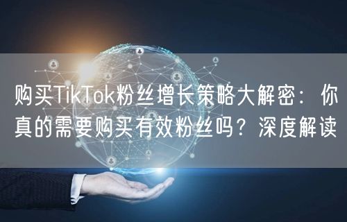 本文深度解读了TikTok粉丝增长策略,探讨了购买有效粉丝的利弊。同时,分享了增长技巧与真实需求的关系,帮助你在TikTok上实现有效的粉丝增长。通过合理的策略和持续的努力,你可以在TikTok上建立起强大的影响力。