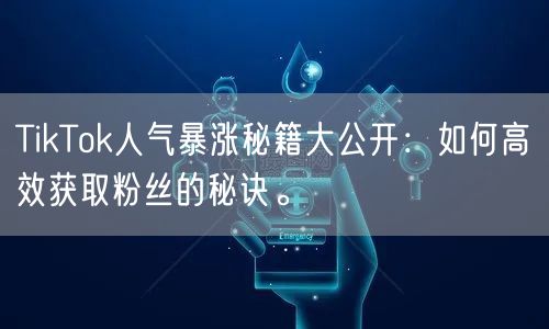 TikTok作为全球最热门的短视频社交平台之一,吸引了众多年轻人的关注。想要在TikTok上快速获得人气,成为网红达人,就必须掌握一些高效的获取粉丝的秘诀。本文将为你揭示TikTok人气暴涨的秘籍,帮助你高效获取粉丝。