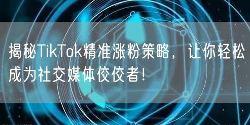 以上便是本文关于揭秘TikTok精准涨粉策略的内容,希望能对你在社交媒体营销中有所帮助。