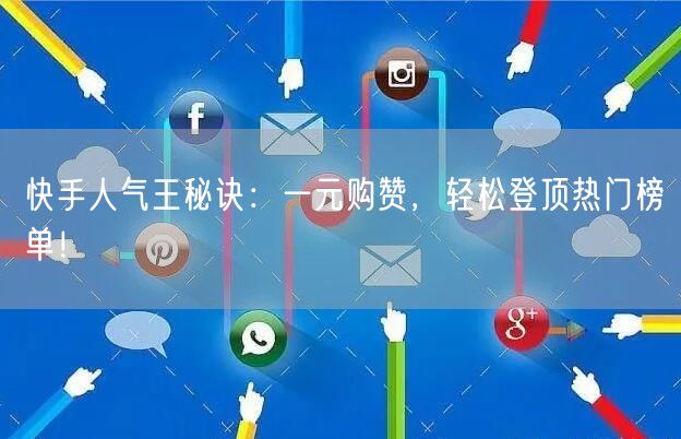 在快手的浩瀚星海中,每一位用户都渴望成为那颗最耀眼的星。那么,如何快速吸引粉丝的关注和喜爱,一跃成为快手的人气王呢?今天,就让我们一起揭秘快手人气王的秘诀——一元购赞,轻松登顶热门榜单!